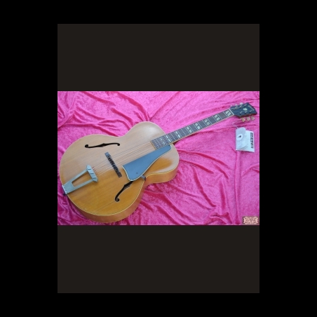 Original.Carved spruce top. Brazilian rosewood fretboard. Maple back and sides. 1+11/16 wide at the first fret. Wonderful sounding archtop Two small hairlines.Original frets and original pickguard. Beautiful fret board inlay. Guitar comes with original hardshell case. A one owner piece.