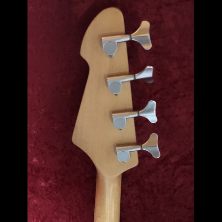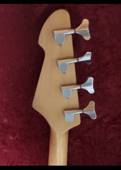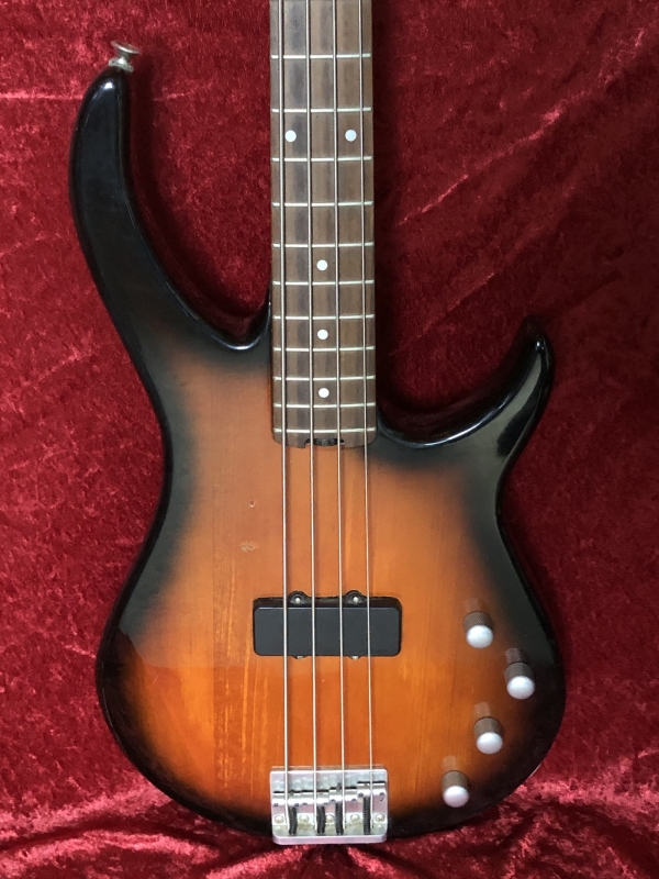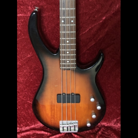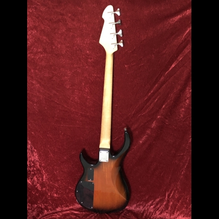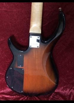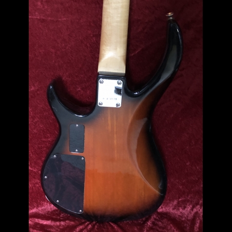 Peavey Fury II basses were made in Korea. This one, according to Peavey, was probably built in the mid-90s. The beautiful tobacco burst finish. The back has no buckle rash. It has a powerful single active pickup with three-band active EQ and volume control. Missing thumb rest.The EQ controls provide a wide range of tones. With the bass EQ turned up, it makes a really fat full sound. A thin neck makes it easy to play - just 1.5" wide at the nut. It has a solid wood body, maple neck, and rosewood fretboard. The tuners are satin chrome, and the bridge is matching. Weight 7lbs. 9.2oz.. Delivered with good gig bag.