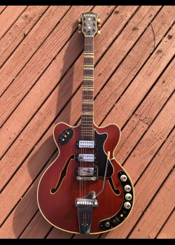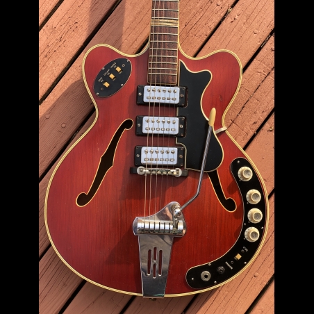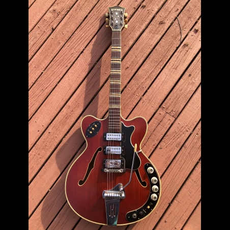 The 1965 Hofner 4575 is a standout piece of European guitar history. It is essentially the "luxury" three-pickup version of the famous Verithin (Model 4574), designed for players who wanted a thinner, more comfortable semi-hollow body without sacrificing the "big" sound of a three-pickup array.