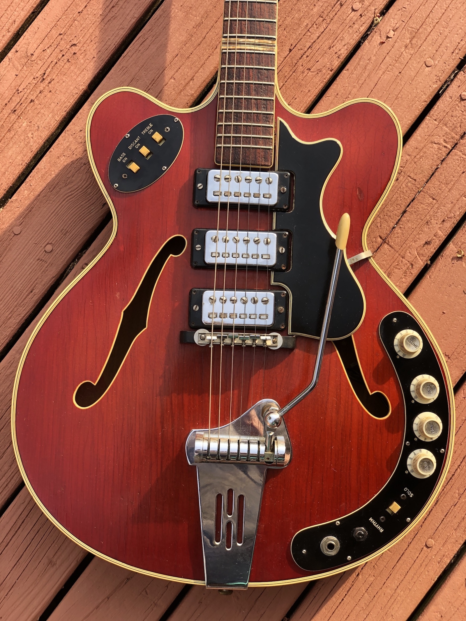 Serial Numbers: Guitars sold through Selmer usually have a serial number on a label inside the f-hole or stamped on the back of the headstock. European/Worldwide models (non-Selmer) often had no serial numbers at all during this era.