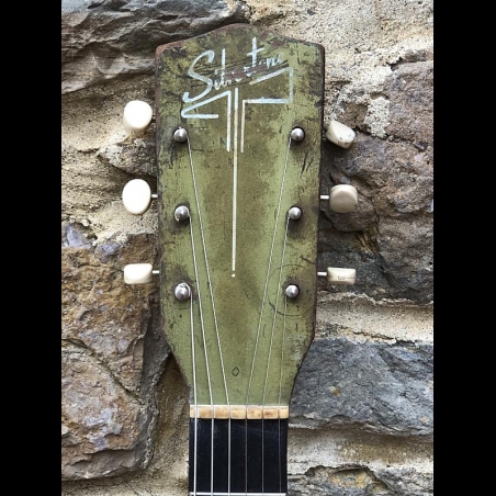 1957-1958 Harmony Stratotone h-42/2 Sears Silvertone. solid body neck thru full scale construction. Vintage & rare. Not a reissue. Metallic Green Colorama finish. Harmometal binding with rubber insert. Single concentric tone and volume control with a tone bypass slider switch. Single DeArmond pick up that just screams.Good string height. Coolest of the cool. Full scale. Fast, big super comfortable neck. Super light weight and comfortable.